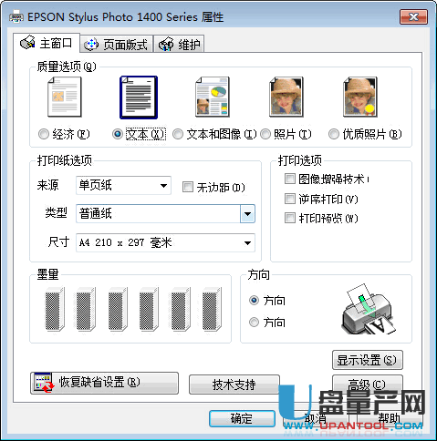 爱普生Epson stylus photo 1400打印机是一款比较老的打印机,而之前的驱动全部都是英文版的,官方提供的也是英文的,所以我们找了个汉化的驱动给大家,这样在打印界面就是中文的,如下图所示