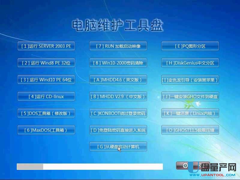 电脑维护工具盘主要是量产usb-cdrom使用的,所以功能全部都是内置的,带有大量的系统维护工具,pe也是带有2003pe,win8pe,win10pe三种,非常的全面,常用的dos工具也是一应俱全,可以看上面的启动主界面就知道了,而pe里的工具更多,看下面的图。