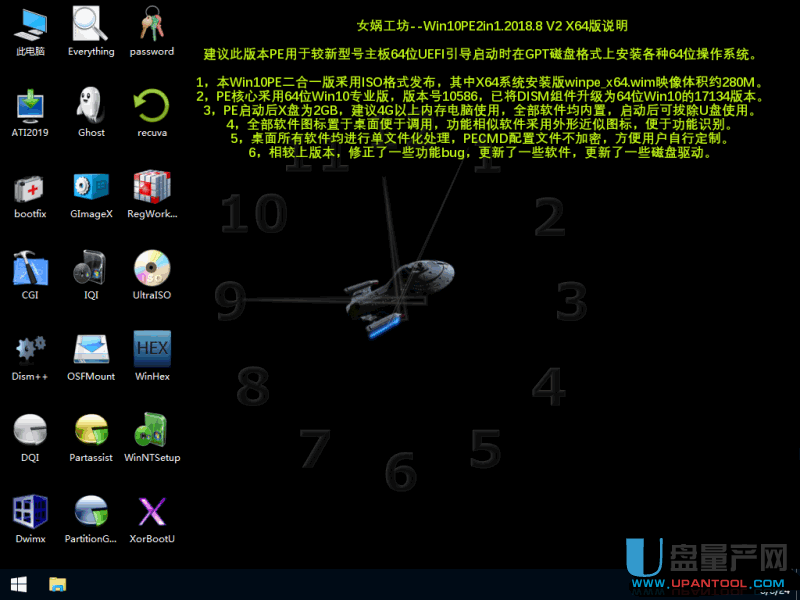 内含win10pe的32位和64位二合一,支持BIOS+MBR以及UEFI+GPT两种引导启动及磁盘安装模式
