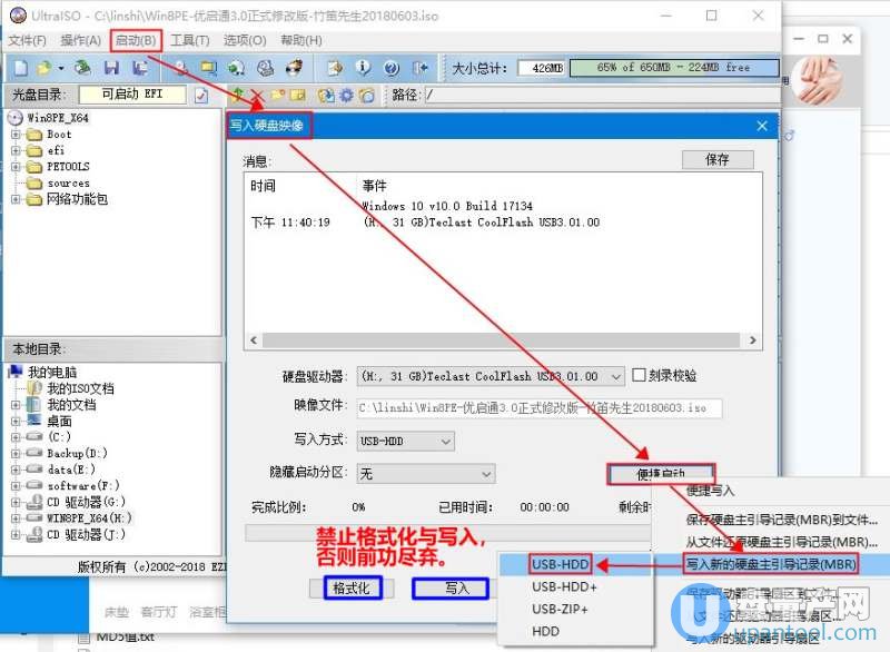 3、千万别格式化与写入到U盘,如下图这样用便捷写入即可。