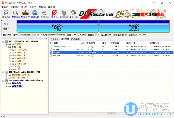 打开diskgenius也会列出我们电脑的所有分区,这时候选中win7无法识别的那一个U盘分区,点击“浏览文件”即可进行访问,如下图。