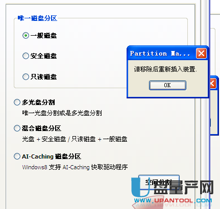 2.如果要量产USB CDROM+普通U盘 存储区的话,请选择 混合磁盘分区