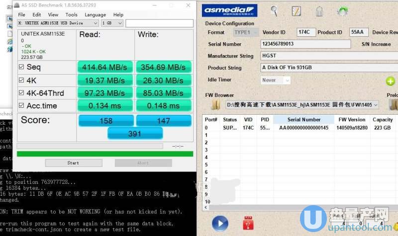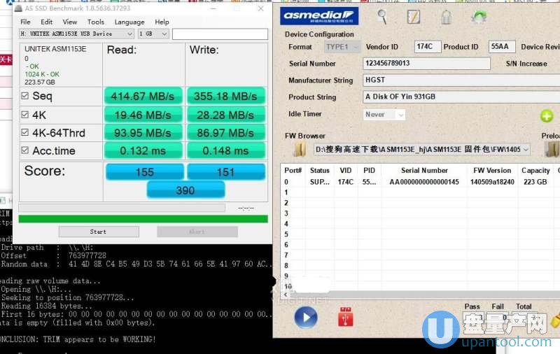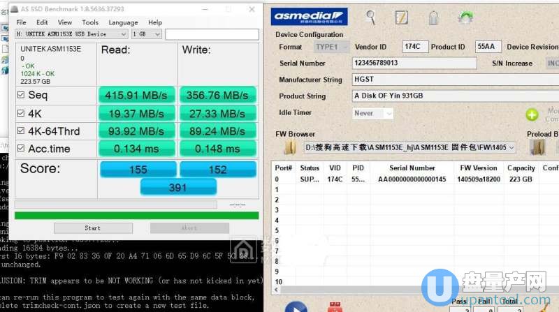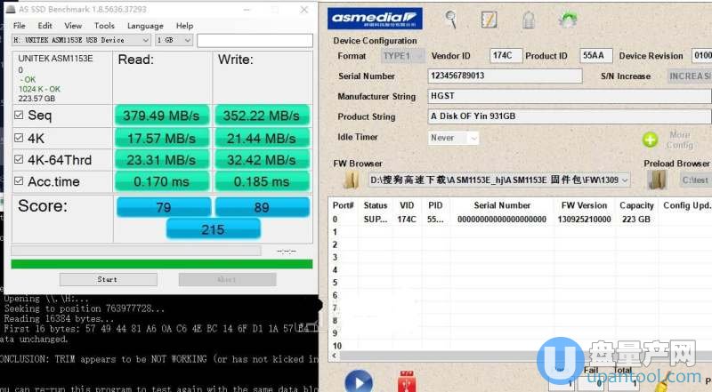 下面开始测试刷入不同的固件下,移动硬盘的速度测试结果,固件基本都是ASM1153E固件升级工具自带的,还有一个固件是这个。