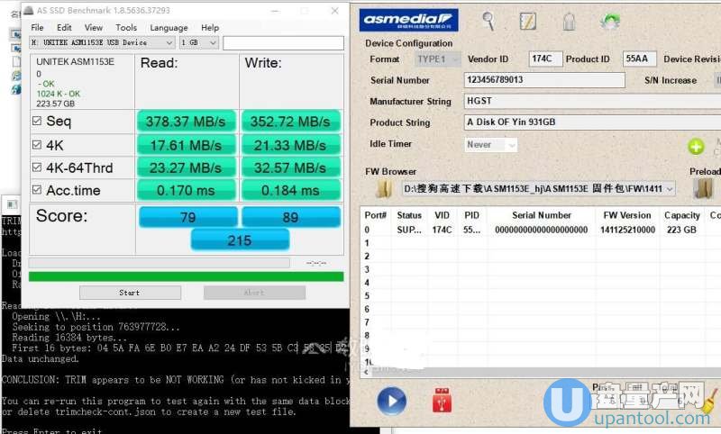 总结:130925_21_00_00.bin 和141125_21_00_00.bin这两个固件比较接近,性能几乎一样,在所有跑分里是最低的,而且也不支持TRIM。