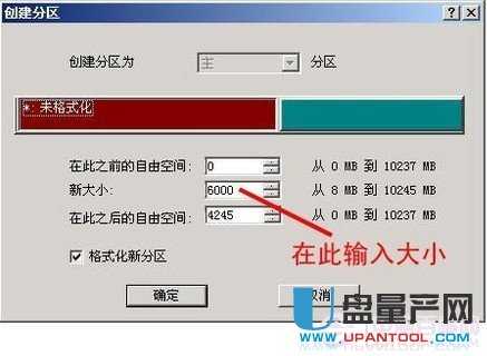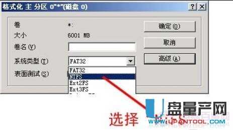 选择好主分区容量之后,点“确定:进入如下界面,选择硬盘分区格式: