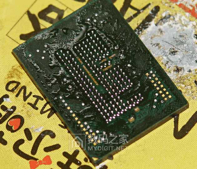 1、首先从手机上用风枪吹下这个eMCP闪存,样子是下图这样的,然后对闪存进行植球。