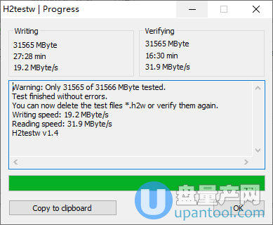 用h2testw测试U盘容量完美通过,说明容量完全没有问题是足量的。