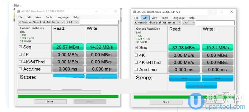 下面是对比量产前后的读写速度,可以看到读取速度由20M/S提升到33M/S,写入速度14M/S提升到19M/S。
