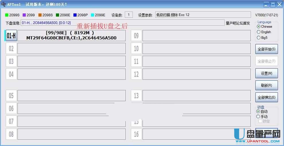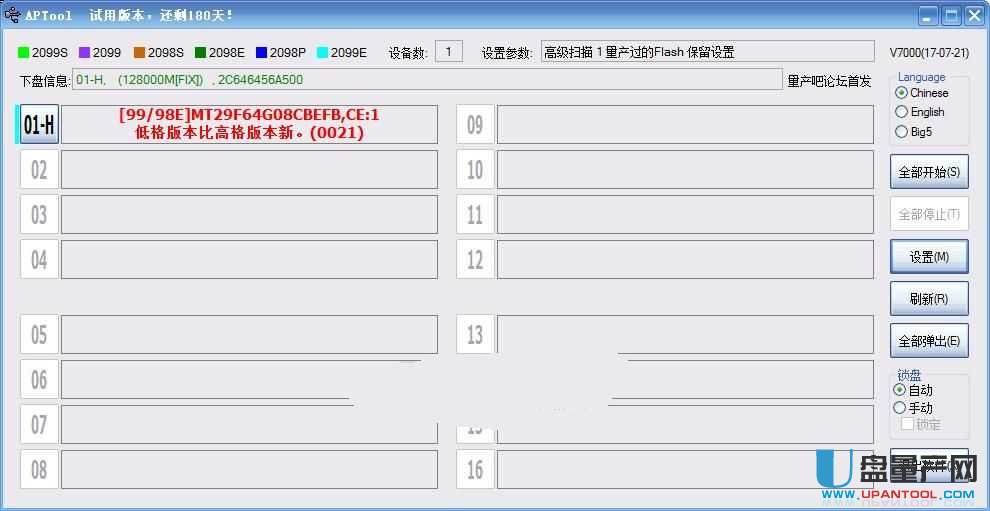 4、有了主控型号,我们直接下载芯邦量产工具APToolV7000(2017-07-21)0814,注意此主控只能此版能识别。