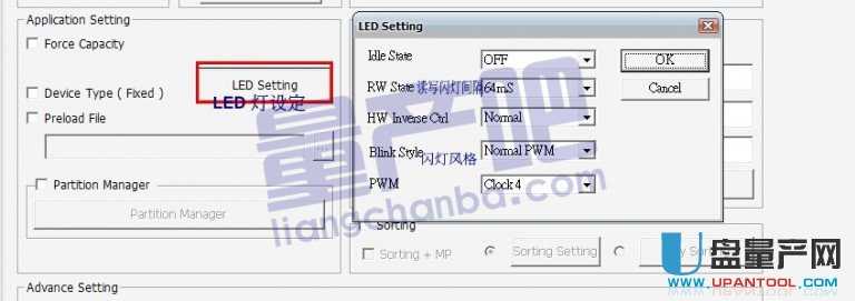 7、LED Setting(LED灯设定)功能,主要是用来设定U盘灯号闪烁模式的,U盘预设灯号是读写时闪烁,不读写时长亮。