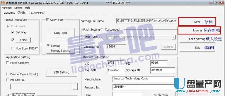 9、设定好要量产的信息后,点击右边Save(存档)或是Save as(另存配置档),将你的设定储存。