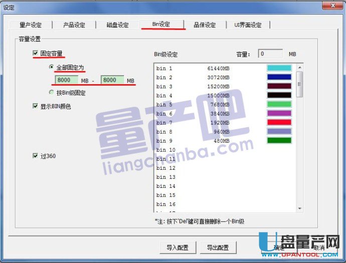 Bin设定项中有关固定容量设定,第一次使用了默认的8G: