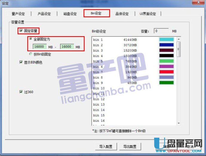 Bin设定项中有关固定容量设定,第二次把它改成16G: