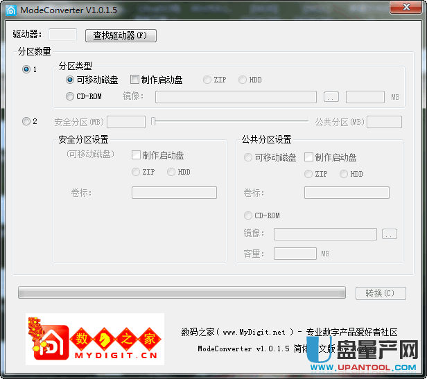 也就是只选中可移动磁盘,只1个分区,这样把U盘插好后点击转换就能生成一个正常的可移动磁盘的U盘,达到修复的目的了。