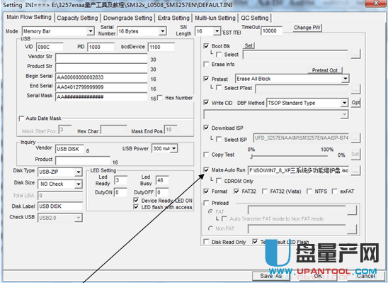 勾选Make AUTO Run 并选择ISO文件的路径,设置完成之后,点OK,保存设定.