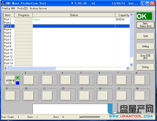点START 开始 ,稍等几分钟,等变成PASS 重新插拔U盘即可