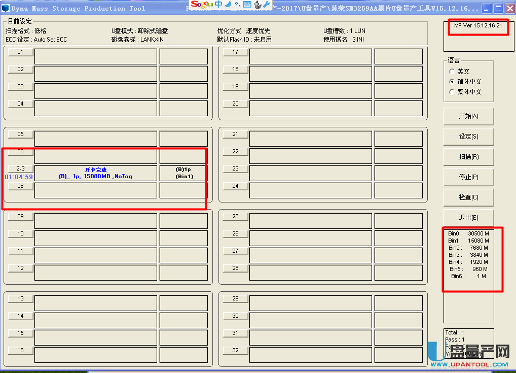 3、下载:慧荣SM3259AA黑片U盘量产工具Dyna Mass Storage V15.12.16.21(O1218),解压后【UFD_Tool】文件夹里有分区工具uDiskToolBar-10254.exe