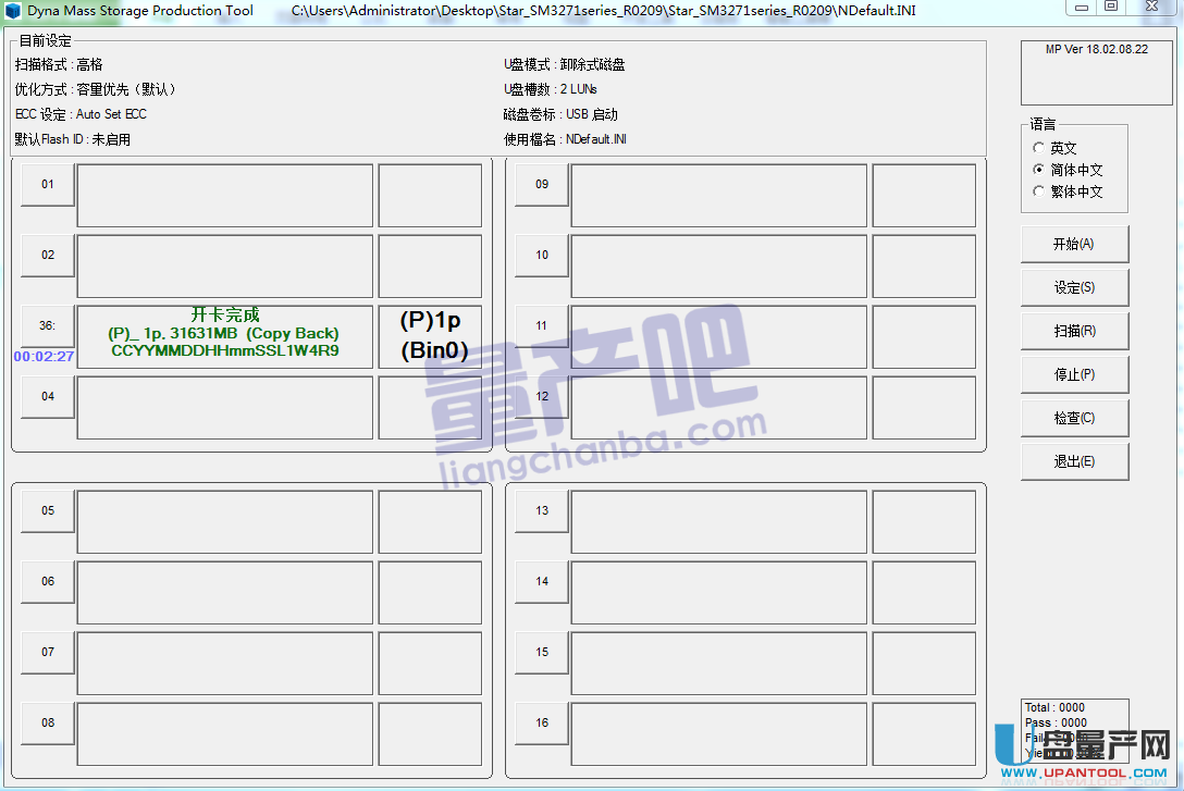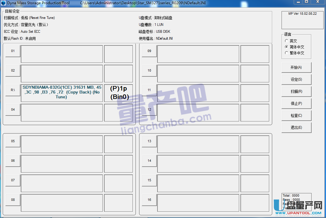 这里换了一个新的慧荣SM3271 V18.02.08.22版本的量产工具就识别U盘了。