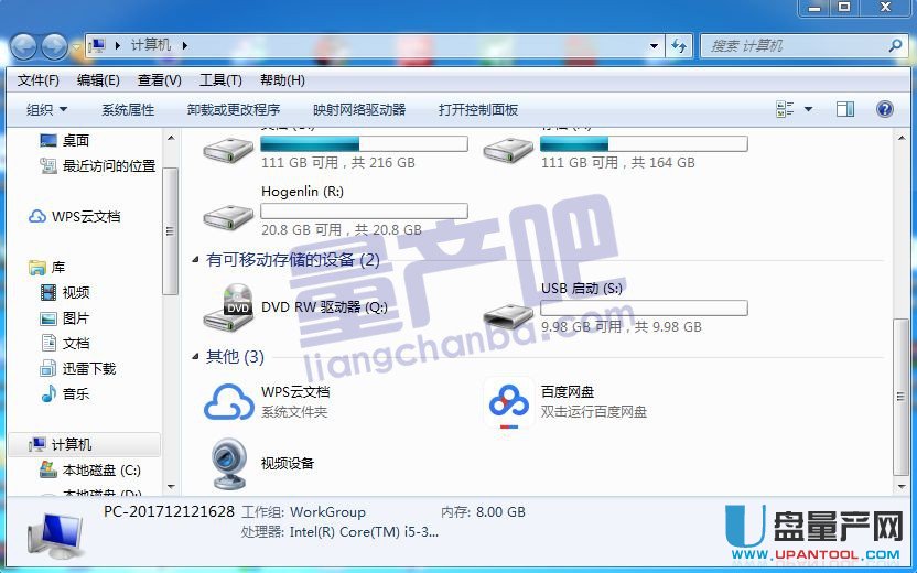 分区后U盘效果图(我给第二分区选择的是硬盘模式,所以显示在硬盘列)