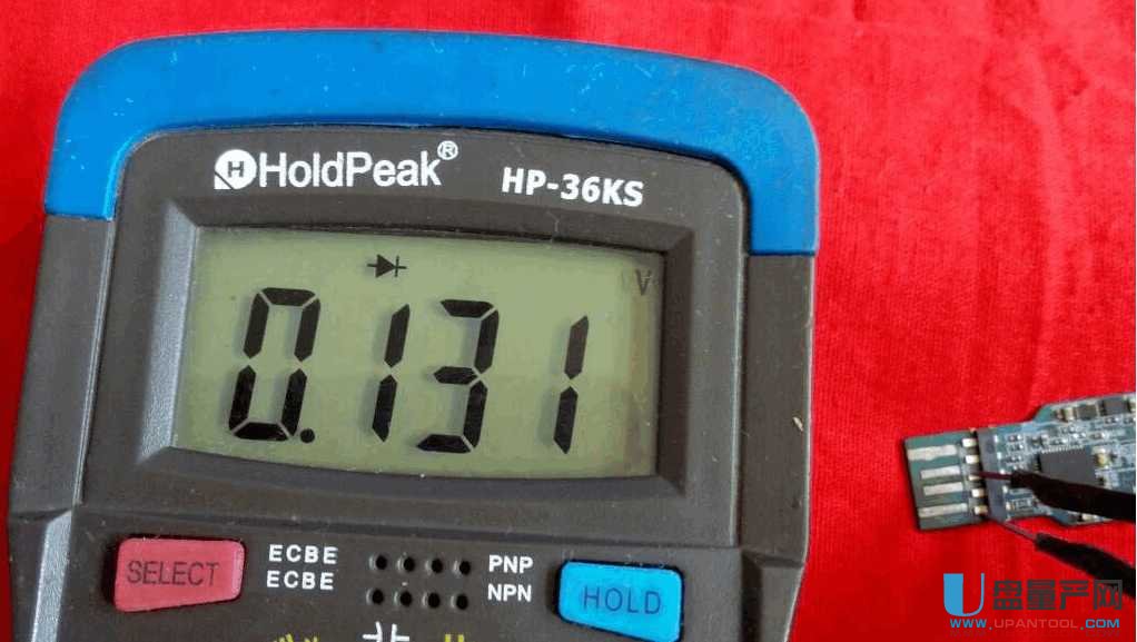 本以为已经修复成功了,结果把U盘插到USB3.0接口发现U盘无法正常运行在3.0模式下,就如同一个普通USB2.0接口的U盘一样,说明什么呢?因为USB3.0的接口比2.0接口就多5个触点,说明负责usb3的触点出现了问题,用万用表的二极管档测量这几个触点后就发现有一个触电正反向都是只有0.131V的导通电压,而旁边正常的触点却是正反向有不同的导通电压,明显不正常。而这个触点与主控间也没有任何其他元件而是直通主控的,将主控加焊了一次,问题依然不变,显然是因为此引脚已经损坏了而导致无法正常运行于3.0模式下的。