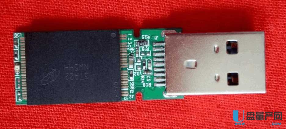 一个雷克沙S23的U盘坏了,具体症状是插入电脑后没有显示或有显示但提示请插入磁盘,拆开这个U盘发现电路板比较薄,再加上是推拉结构的塑料外壳,在使用过程中比较容易出现问题,用量产工具无法量产成功,说明是U盘硬件出现了问题,这么薄的电路板判断是主控或闪存脱焊导致接触不良导致的问题。
