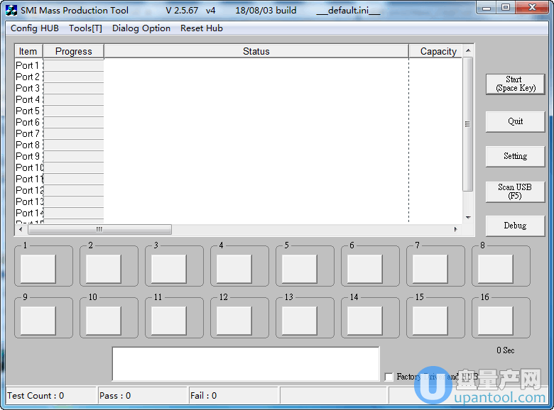 1、以U盘网的慧荣SM3280AB U盘量产工具V2.5.67 v4英文版量产工具为例,我们直接打开可以看到是英文版的,且没有任何设置中文的按钮;