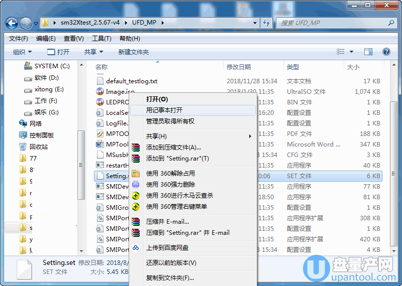 2、我们在慧荣量产工具解压后的文件夹里打开UFD_MP文件夹中,找到Setting.set文件;