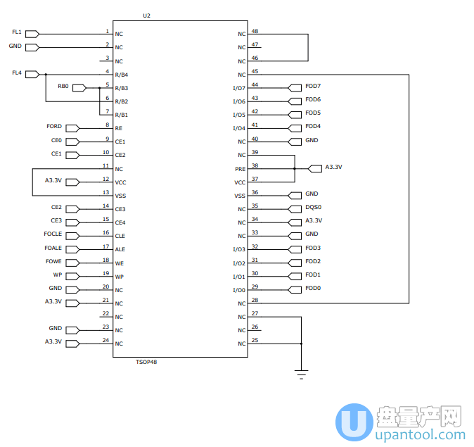 一个U盘的慧荣SM3257ENBA的主控板作者由于焊接过多导致焊盘腐蚀已经无法焊锡,所以想用细铜丝把主控与闪存连接起来,但如果想要正确连接就需要用到SM3257ENBA主控和闪存的芯片原来图,而这里就分享给大家作者281247347自己摸索出的SM3257ENBA和闪存的原理图,有需要的可以参考