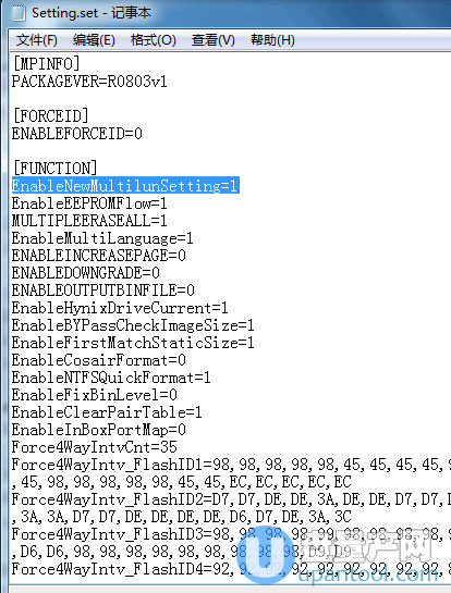 1、任意慧荣主控量产工具版本,打开后,找到UFD_MP文件夹,打开后找到Setting.set文件,用记事本打开此文件