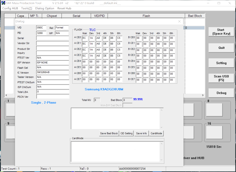 慧荣SM3268AB三星K9CHGY8S5M闪存U盘量产成功