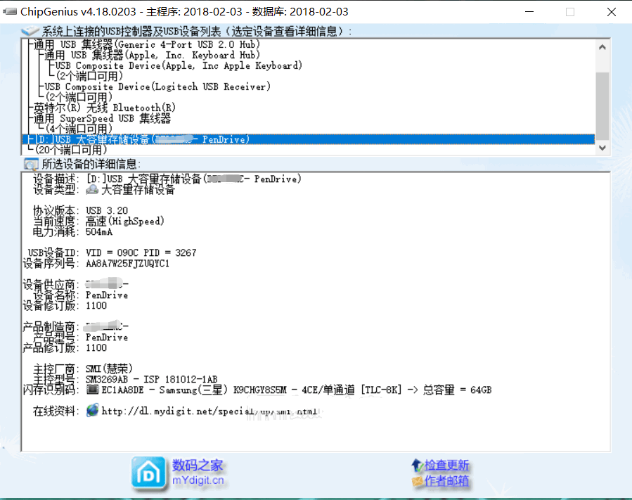 闪存吹上后,直接用 慧荣SM3268AB V2.5.69版量产工具识别如下图