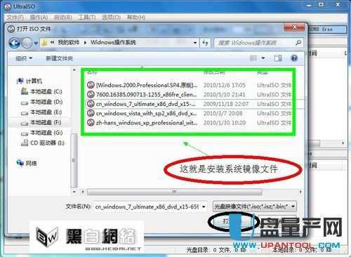 浏览到存放镜像文件的目录,选中该目标文件,点击“打开”按钮