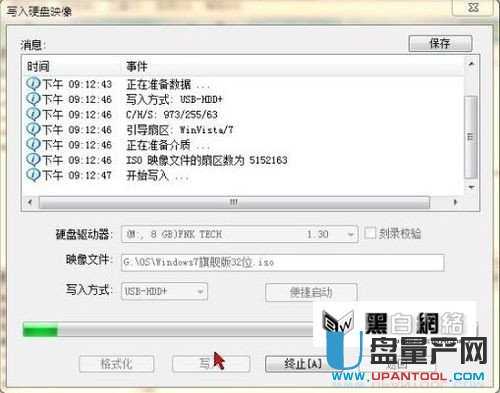 接下来在弹出的窗口直接点击“写入”按钮(注:将写入方式选择为“USB-HDD+”,如果不是这个模式,可能导致电脑无法通过U盘正常启动。)