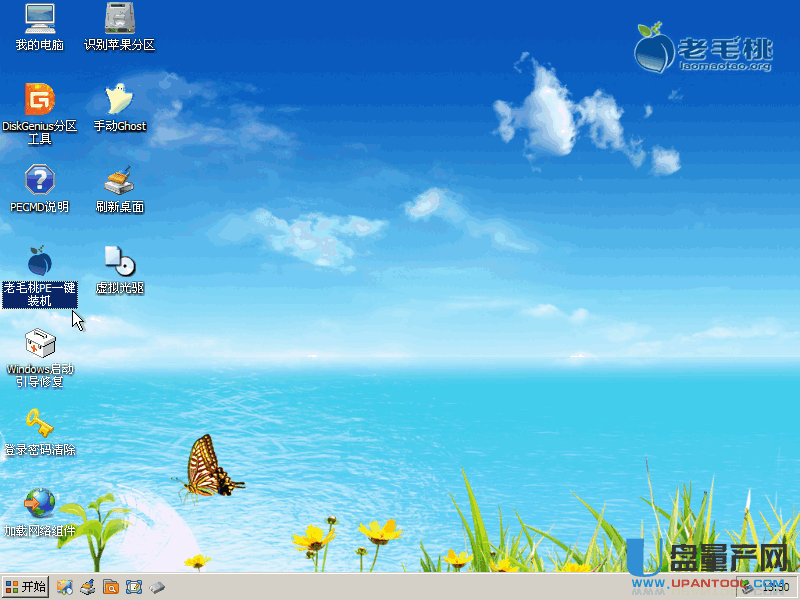 当进入Win2003PE系统桌面后,如果“老毛桃PE一键装机”工具没有自动运行的话,我们就手动双击该软件运行它即可!