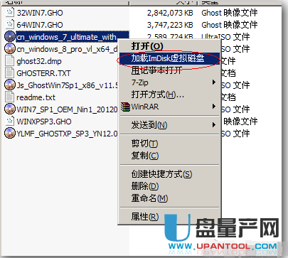 首先我们需要做的是,用虚拟光驱加载纯净版系统ISO文件。找到你的纯净版系统文件,右键点击——“加载imdisk虚拟磁盘”
