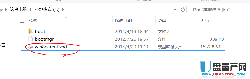 1.打开U盘,找到win8.vhd或win8.vhdx改名为win8parent.vhd或win8parent.vhdx