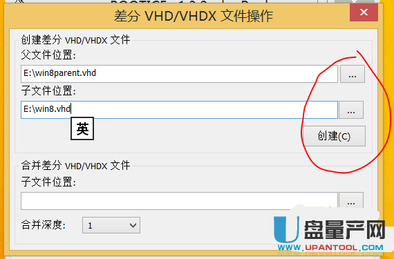 3.父文件位置 选择win8parent.vhd或win8parent.vhdx,子文件位置选择win8.vhd或win8.vhdx