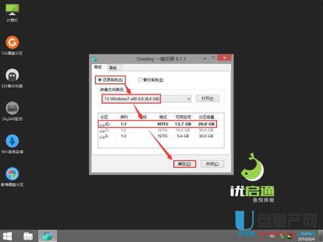 此外可使用onekey硬盘安装器8.1.1(注:低版本不支持WIM格式安装)来安装,如下图: