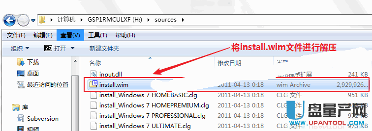 打开刻录好的U盘,找到sourcesinstall.wim文件,如图所示: