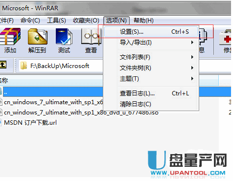打开后,在 winrar 主界面菜单栏中选择“选项”-“设置”项