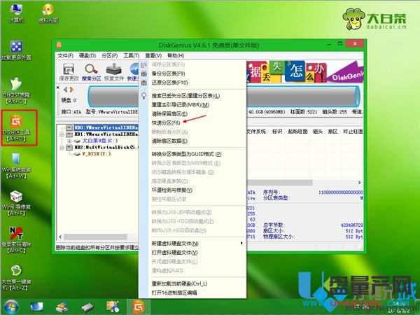 双击桌面上的打开【DG分区工具】,右键点击硬盘,选择【快速分区】;