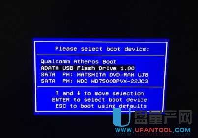 步骤三、在进不了系统都电脑上插入U盘,然后重启电脑后在显示屏亮起的时候不间断的按F12或者F11或Esc等快捷键打开启动菜单,因为不同的电脑有不同的快捷键,大家多试一试不同的按键,然后会弹出一个选择从硬盘还是U盘进入的选项,一般的英文的,我们只需要看到有写usb或者hdd等字眼的选择回车就行,如下图所示。
