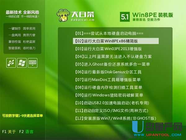 步骤四、然后就会从U盘启动了,这时候会出现U盘的启动界面,如下图这样的,我们选择从winpe启动,一般选择win8pe,老电脑选项03pe。