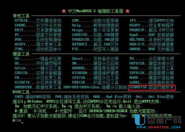 方法三、如果计算机硬盘坏道导致上述状况,我们可以通过u盘启动winPE 中的Maxdos9.3工具箱中的scandisk磁盘扫描修复工具进行修复: