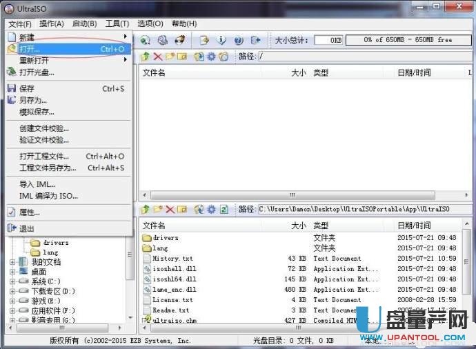 1、找一台正常能用的电脑,下载好win7的系统安装盘,注意是iso格式的安装版系统,非ghost系统,当然ghost也是可以的,结尾会说,这里只说安装版的系统,然后用ultraiso把iso镜像写入U盘里做成启动盘,注意U盘会被格式化保存好之前的U盘文件,写入方法为,点击打开系统的iso镜像。