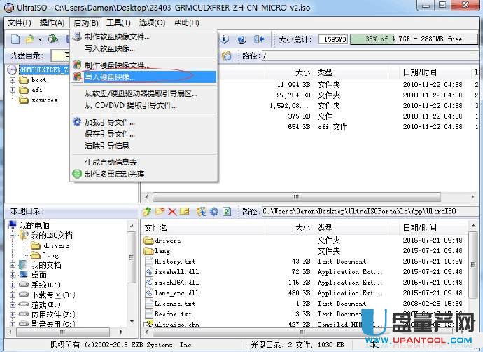 3、然后点击启动-写入硬盘映像,如下图