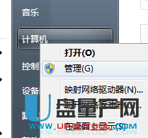 右击桌面上的“计算机”图标,从弹出的右键菜单中选择“管理”项。
