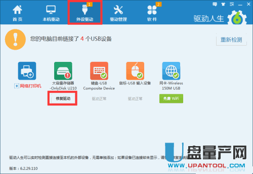 二、利用“驱动人生”来识别并智能安装U盘驱动。