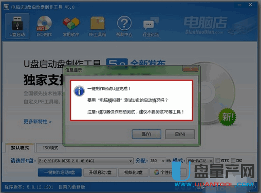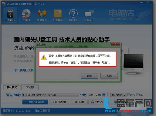 插入U盘之后点击“一键制作启动U盘”按钮,程序会提示是否继续,确认所选U盘无重要数据后开始制作