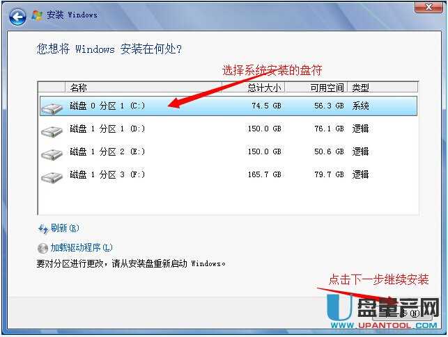 选择系统安装盘符
